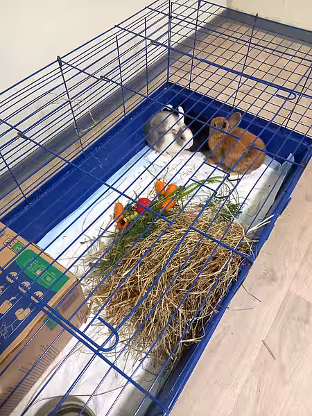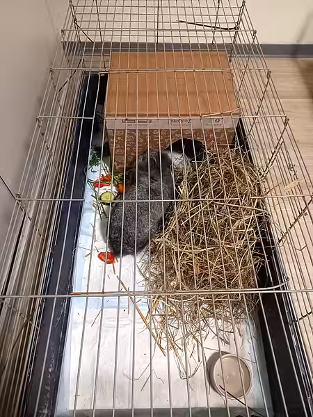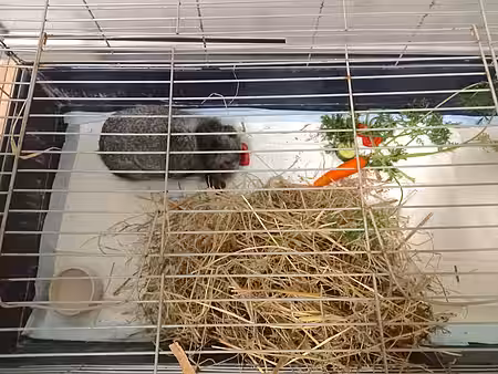 Erfreulicherweise sind 2 Böcke noch am nächsten Tag in je ein neues Zuhause umgezogen. Als erstes schickte uns "Jochen" vom neuen Zuhause aus Post: Er wurde bereits tierärztlich durchgecheckt und wird nun langsam an die bereits drei vorhandenen Kaninchen herangeführt. Zwischendurch lebt es sich bei den Meerschweinchen auch ganz gut (keine Sorge, das ist keine Dauerlösung). Bald kann er dann komplett bei seinen Mädels einziehen (erfreulicherweise ist er bereits kastriert).