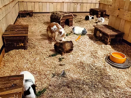 Kleintiere wie Kaninchen oder Meerschweinchen gehören nicht in einen Käfig und wir bzw. der Lottihof vermitteln auch nicht in solche Haltungsformen, da wir sie als nicht tiergerecht erachten. Die Kollegen vom aktion tier Lottihof machen vor, wie artgerechte Kaninchenhaltung geht: Große Gehege, am besten mit Zugang nach drinnen und draußen, Möglichkeiten zum Buddeln und Gesellschaft. Kaninchen sind bewegungsfreudig und brauchen viel Platz, mindestens 2 Quadratmeter pro Tier, sonst kann ihre Muskulatur verkümmern.