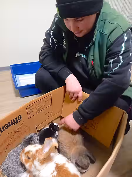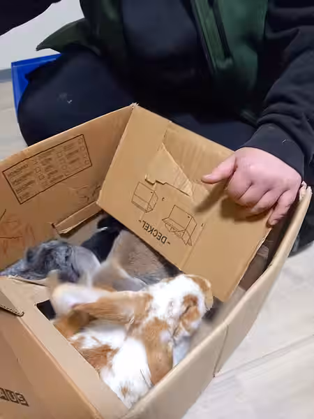 In Herrnburg wurden 6 Kaninchen in einem Karton vor einer Bushaltestelle zurückgelassen. Finder brachten die Tiere zu uns. Es handelt sich um drei Jungtiere und drei erwachsene Tiere, welche dem ersten Eindruck nach in einem gesunden Zustand sind. Insgesamt würden wir den Pflegezustand als gut bezeichnen. Zudem sind die Tiere zahm.