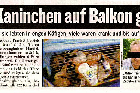 Der 45-jährige Frank S. erzählte uns auch seine persönliche Geschichte. Wie er vor einigen Jahren angeblich unverschuldet arbeitslos wurde, in ein tiefes Loch fiel, zu Trinken begann. Die Töchter wünschten sich Kaninchen, aber die beiden in der Zoohandlung gekauften Tiere waren keine Weibchen, sondern ein Pärchen. Der Nachwuchs wurde behalten, vermehrte sich munter, weitere Kaninchen wurden aufgenommen und so waren es am Ende 122 Tiere. Um den Bestand einigermaßen im Rahmen zu halten, mussten die Babys schließlich verkauft werden – das Geschäft mit den Tieren begann. Aber die Geschichte von Frank S. handelt auch von hohen Schulden, diversen Konflikten mit dem Gesetz und einer zerbrochenen Liebesbeziehung. Eine menschliche Tragödie, berufliches und privates Scheitern. Da boten die Tiere eine vermeintliche Zukunftsperspektive, Beschäftigung, ein gewisses Einkommen und ein Entrinnen aus der unerträglichen Bedeutungslosigkeit. Als „Kaninchen-Frank“ war man wer, war wichtig, wurde angerufen, hatte Termine. Vor allem die durch die Kaninchenbabys hervorgerufene Aufmerksamkeit bei den regelrecht inszenierten Aufritten in der Öffentlichkeit muss Frank S. sehr gefallen haben. Bei allem Verständnis für die menschliche Komponente des Dramas ging es uns jedoch in erster Linie um die Kaninchen, denen der Tiersammler ohne vernünftigen Grund Schmerzen und Leiden zugefügt hat.
