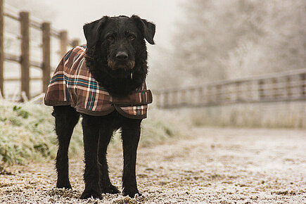 Es ist ein Bild, das sich in den kommenden Monaten wieder häufen wird. Kaum fallen die Temperaturen auf 0°C oder sogar noch weit darunter, graust es auch so manchem Hundebesitzer davor, mit seinem Liebling Gassi zu gehen. Also hüllt er sich nicht nur selbst in wärmendes Gewand, sondern stülpt auch seinem Hund Jacken oder Mäntel, schlimmstenfalls sogar Mützen und Schal über. Sein scheinbar naheliegender Schluss: Weil ihm selbst so furchtbar kalt ist, muss nun auch sein Hund angesichts solch winterlicher Verhältnisse frieren. Der tierische Modehandel hat viele Lösungen auf derartige Probleme gefunden: Wintermäntel für den Hund aus Daune, mit Fellbesatz oder ohne, mit Kapuze oder Schal, Strickjacken aus Wolle und Acryl – verziert mit Glitzersteinchen oder ganz pur und funktional, aber eigentlich immer recht chic. Das Angebot scheint von Jahr zu Jahr immer größer zu werden. Kein Wunder, dass so mancher Mensch, der sich selbst ein Fell wünscht, bisweilen über derart gewandete Hunde nebst Besitzer den Kopf schüttelt.