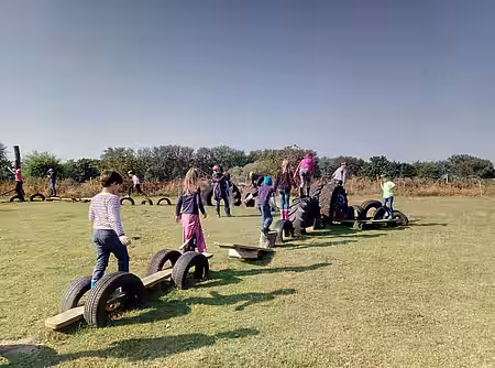 Vor allem unser Reifenparcours erfreut sich großer Beliebtheit. Wir empfehlen den Eltern immer, am besten einen Kaffee und eine Decke mitzunehmen und sich auf eine längere Zeit einzustellen, denn die Kinder können stundenlang auf den Hindernissen herumklettern und balancieren.