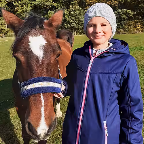 Wir haben uns die Shetties geschnappt und einen Spaziergang mit ihnen gemacht. Meine Freundin und ich hatten Flocke. Zwischendurch buckelte Pony Vespe, aber die Leiterin des aktion tier Lottihofs, Tina Geburtig, hat sie noch festhalten können. Nach dem Spaziergang sind wir nach oben auf die Koppel gegangen und haben die Pferde über Hindernisse geführt. Das hat sehr großen Spaß gemacht. An einem anderen Tag habe ich meiner anderen Freundin den Hof gezeigt. Mit ihr habe ich dann das Esel-Gehege ausgemistet. Da es dann aber stark geregnet hat, haben wir im Stall angefangen, Heusäcke .zu stopfen. Als der Regen vorbei war, durften wir Ponys und Pferde putzen und sogar mit ihnen schmusen. Ich durfte mit Chocky in den Zirkel. Sie ist mein absolutes Lieblingspony.