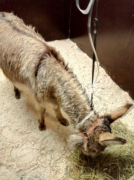 Lotti frisst leider in der Tierklinik sehr schlecht. Deswegen haben wir uns entschlossen, ihren Eselfreund Darwin zu ihr in die Tierklinik zu bringen, damit sie nicht so einsam ist!