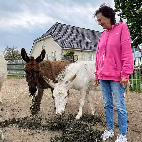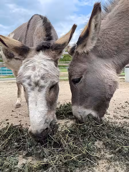 Wir freuen uns immer, wenn unsere lieben Tierpaten ihre Patenkinder besuchen kommen. Heute brachte die Patin unserer Eselin Mariechen für all unsere Langohren getrocknete Brennnesseln mit. Unsere 7 Zuckerschnuten stürzten sich sogleich darauf und sagen Dankeschön!