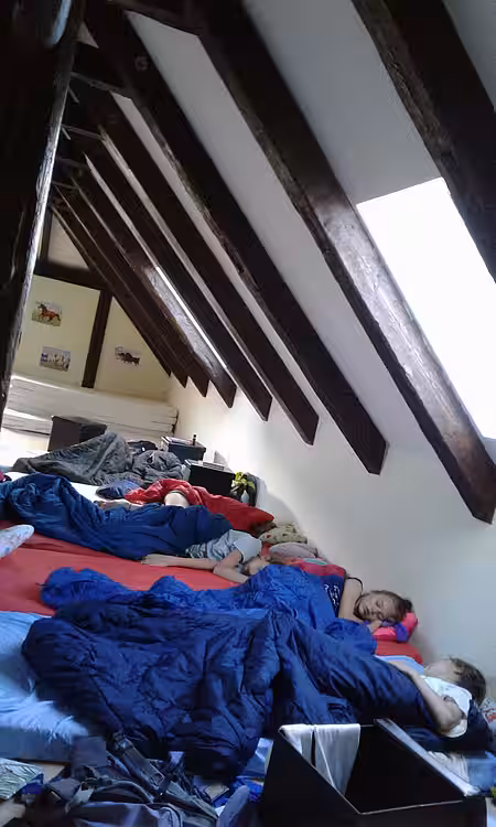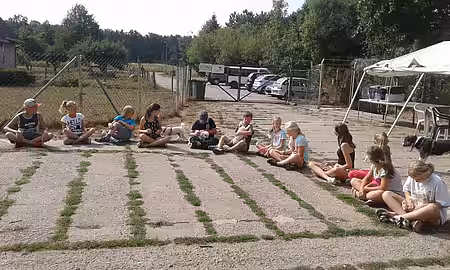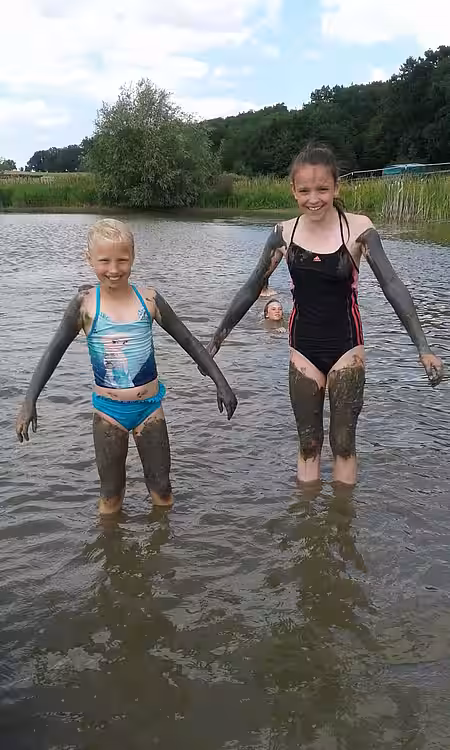 Zwischen durch haben wir uns erst einmal in dem Hofteich abgekühlt oder eine kalte Dusche unter dem Schlauch genossen. Auch die Pferde haben sich bei dieser Hitze über eine kalte Dusche gefreut. Dann war es auch schon wieder soweit, Futter für den Abend zu verteilen, Wasser nochmal überall nachzufüllen und nach dem Abendbrot alle Tiere (Geflügel und Kaninchen) für die Nacht in ihre Ställe zu bringen. Wenn dann alles erledigt war, fielen die ersten Kinder nach schnell Zähne putzen und waschen in ihre Betten.