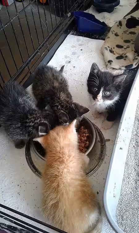 Zu unserer Erleichterung hatten die Mitarbeiter dort vor Ort wie abgesprochen die Katzen schon einige Zeit lang angefüttert und so warteten viele Katzen auf ihr abendliches Futter. Mit unseren Katzenfallen und Körben fingen wir 12 ausgewachsene Katzen und 10 Katzenwelpen ein. Die ausgewachsenen brachten wir ins Tierheim Roggendorf. Die Mitarbeiter dort warteten schon, um diese dann am nächsten Tag von der Tierärtzin kastrieren zu lassen. Da bis auf ein Kater alle sehr scheu waren, wurden die kastierten Katzen einen Tag später wieder zu dem Gelände in Boddin gebracht und dort wieder frei gelassen. In Absprache der Eigentümerin des Betriebes werden alle Katzen weiterhin dort versorgt.