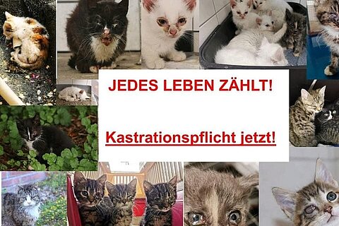 Wir möchten, dass das Leid der Straßenkatzen zukünftig endlich ein Ende findet und dies erreichen wir nur mit einer Kastrationspflicht und Kennzeichnungspflicht für Freigänger-Katzen. Wir möchten, dass Tierheime und Tierschutzvereine mit einer Katzenschutzverordnung endlich entlastet werden!