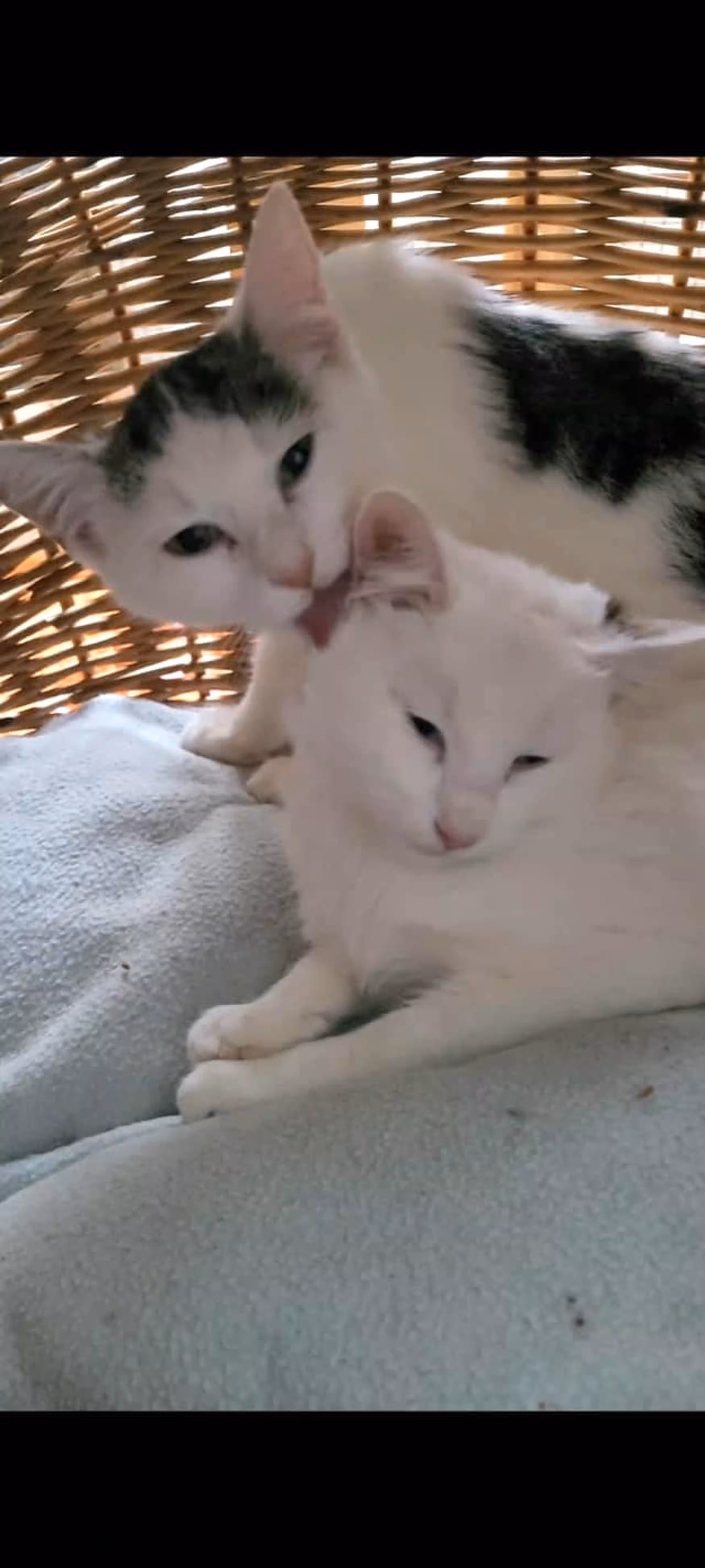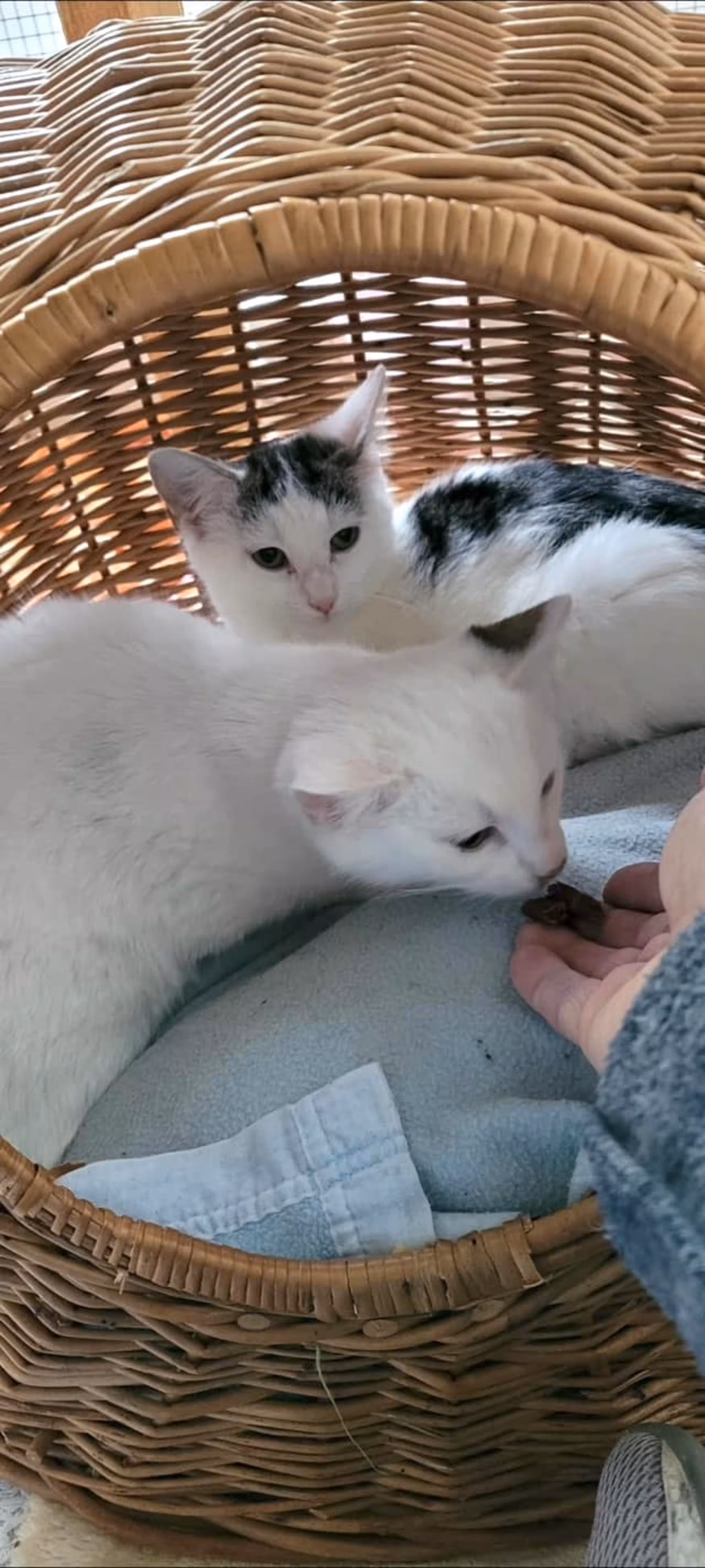 Flöckchen (weiß) und Meira (weiß/grau) sehnen sich nach einem liebevollen Zuhause und möchten endlich in ein neues, aufregendes Kapitel ihres Lebens starten. Diese beiden unzertrennlichen Mädels sind fest entschlossen, gemeinsam das Herz ihres zukünftigen Besitzers zu erobern.