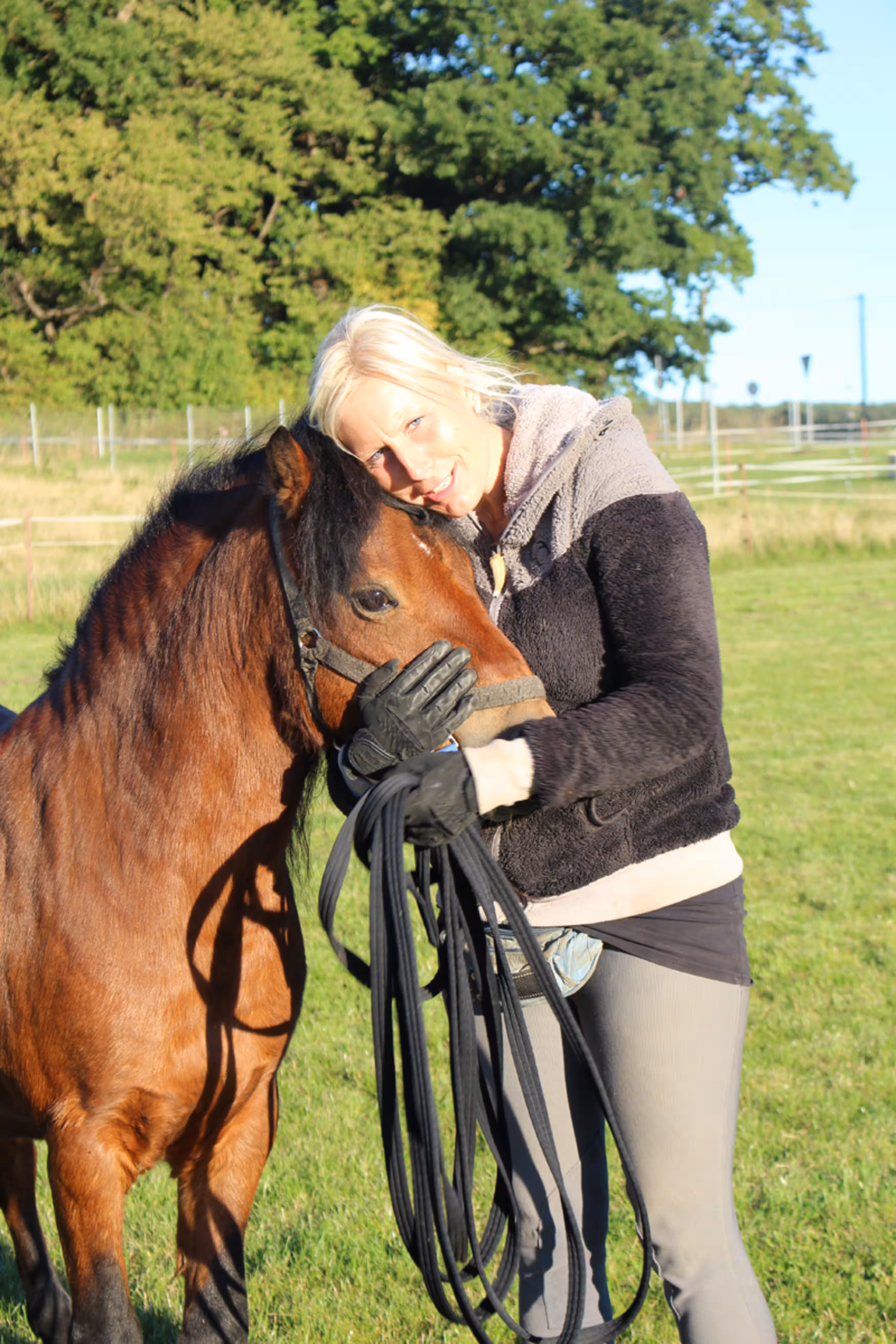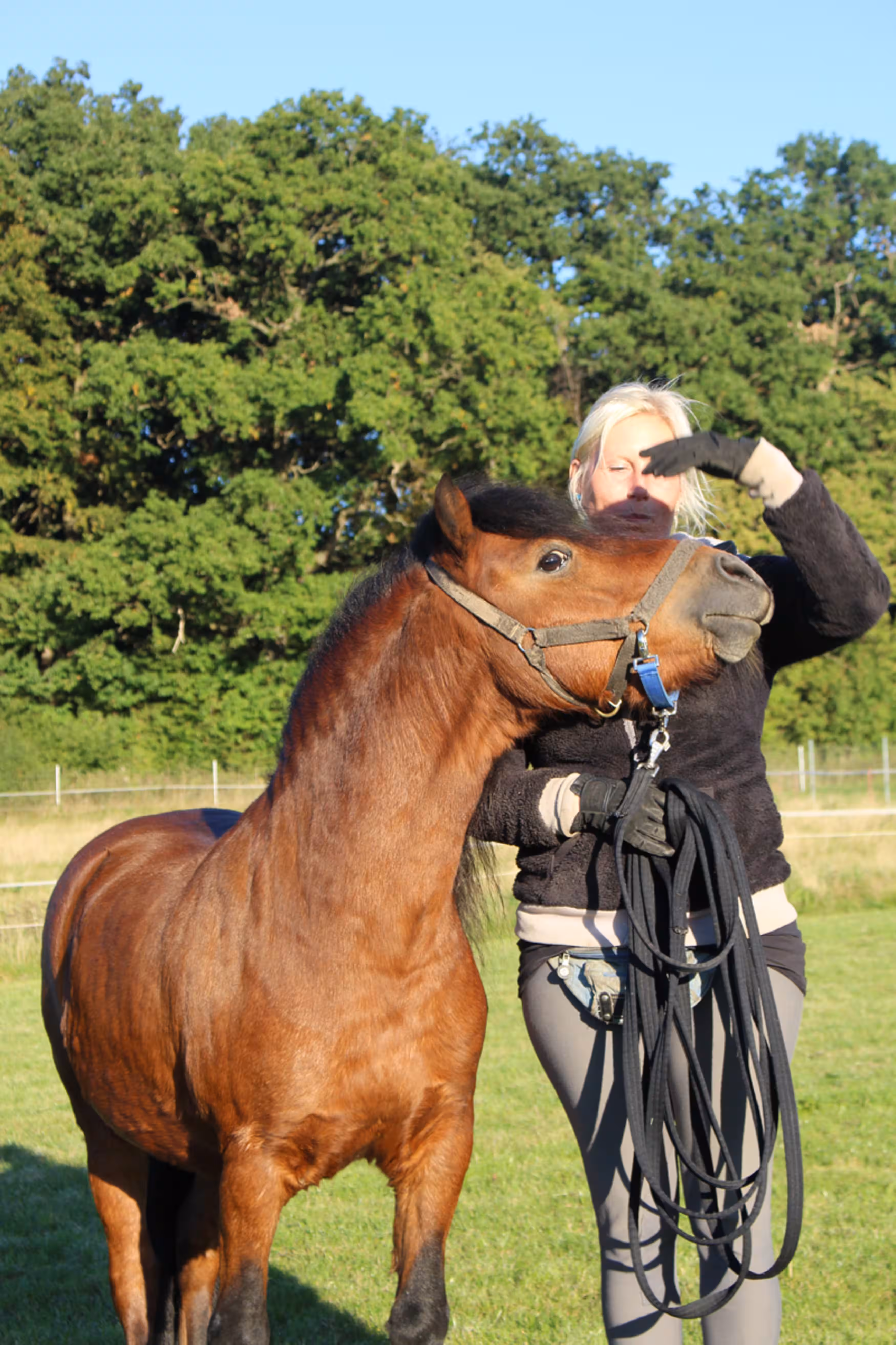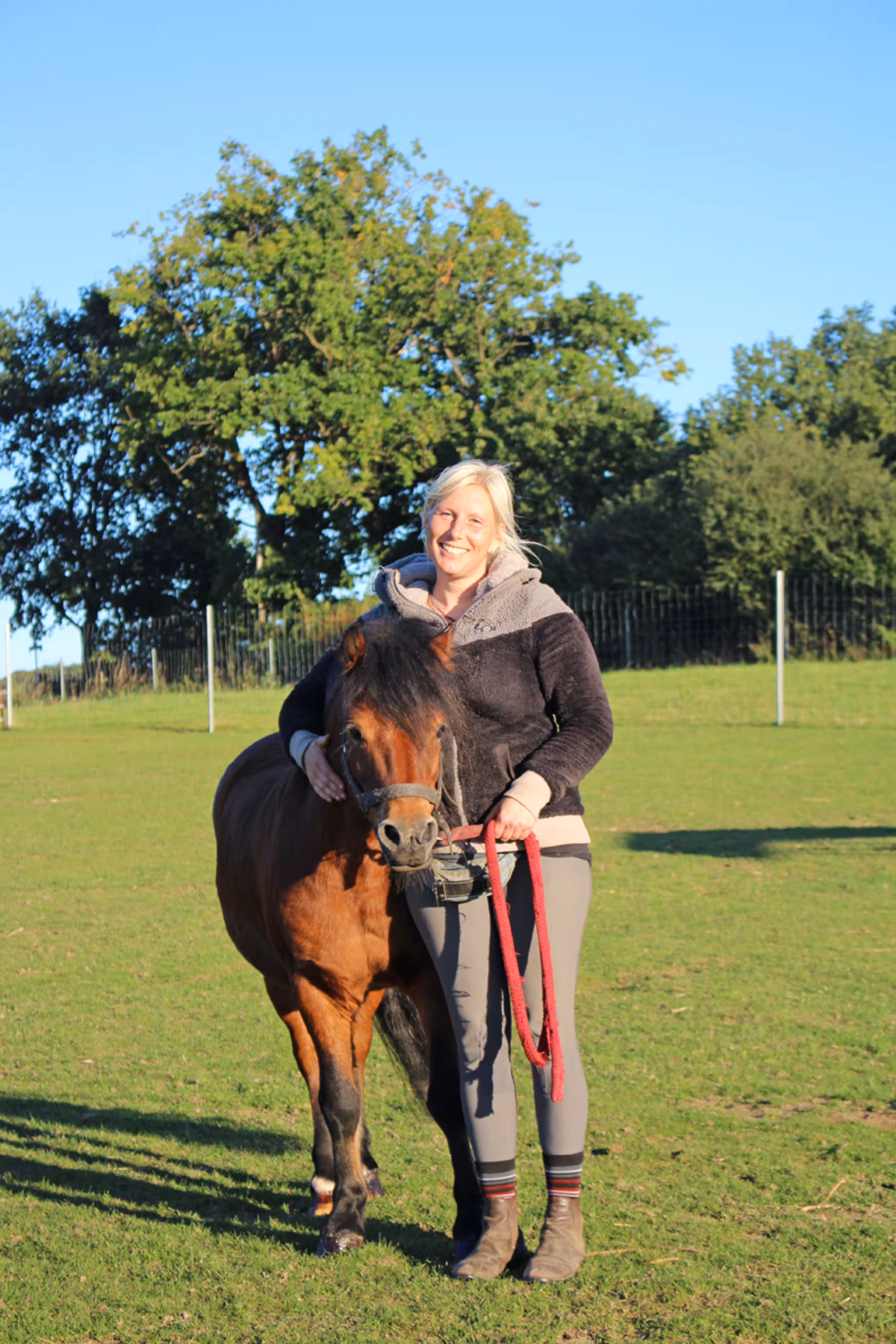 Wir bauten ihm eine ausbruchsichere Koppel mit einem schönen Unterstand und beschlossen, ihn hier auf dem Hof zu behalten. Unsere Welsh Cop Ponystute Josie bekam er zur Gesellschaft, da er ohnehin nur mit Stuten zusammen sein kann. Andere Wallache hätten kein angenehmes Leben mit ihm. Mittlerweile hat er bei uns seine festen Bezugspersonen: Unsere Erna (Tierpflegerin), Willi (ehrenamtlicher Helfer) und mich, Dori (Pferdewirtin). Wir dürfen seine Koppel betreten ohne dass er schlägt oder nach uns schnappt. So oft es geht beschäftigen wir uns mit ihm. Erna und ich dürfen auch ganz oft mit ihm schmusen. Sein Verhalten Menschen gegenüber ist auch sehr viel besser geworden. Er ist ein tolles Pony, und er darf seinen Lebensabend bei uns genießen. Deshalb suchen wir noch ganz viele liebe Paten, die ihn und uns dabei unterstützen, ihm ein schönes und artgerechtes Pferdeleben zu ermöglichen.