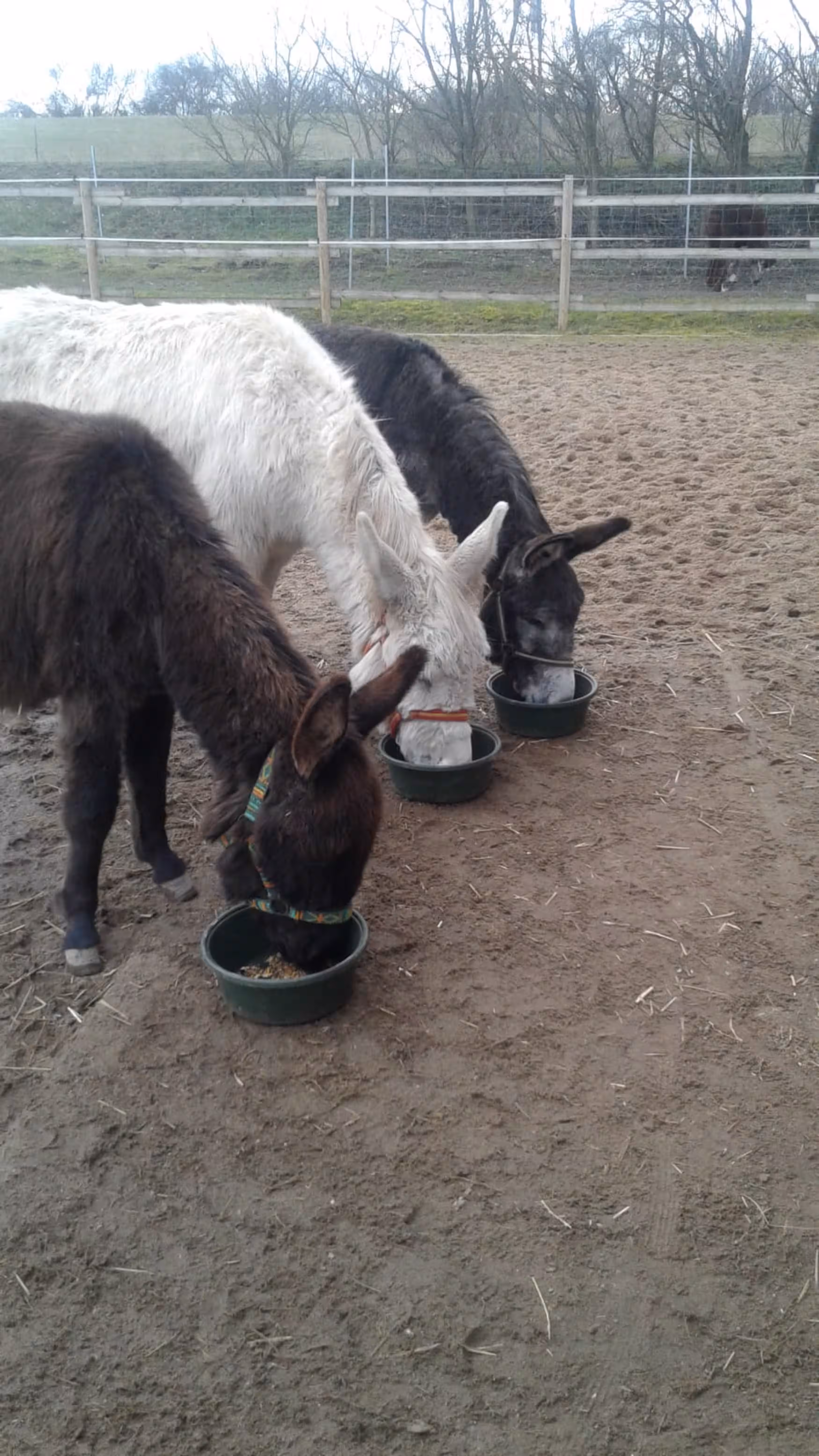 Eselin Jule hat dann allerdings leider eine Huferkrankung entwickelt, die so gut es ging behandelt wurde. Zusätzlich wurde auch eine Erkrankung der Leber festgestellt. Leider hat sich das Krankheitsbild nicht so verbessert wie erhofft, so dass schweren Herzens die Entscheidung getroffen wurde, auch diese beiden Esel (trennen kann man sie nicht) zu uns zu holen, um eine Genesung so positiv als möglich beeinflussen zu können.