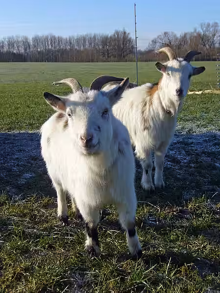 Die ersten Ziegen, die ins Meckerland einzogen, waren Billy und Elli. Die beiden kamen zusammen mit den Esel Lotti und Darwin und den Kamerunschafen Sternchen und Luna aus dem Kinderhospiz Sonnenhof in Berlin zu uns.